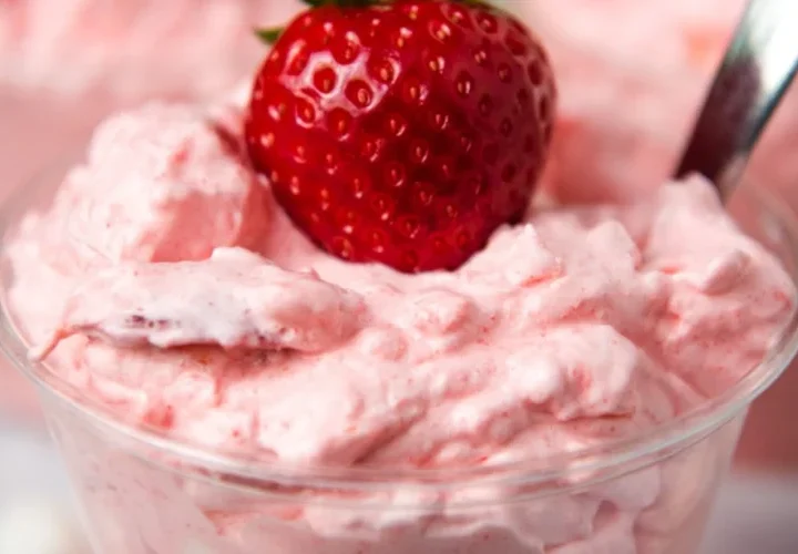 I personally love serving it as a dip with fresh strawberries. The combination of creamy fluff and juicy berries is simple but always a hit. It’s also a beautiful dessert option for baby showers, bridal showers, Valentine’s Day, Easter, or summer parties thanks to its soft pink color.